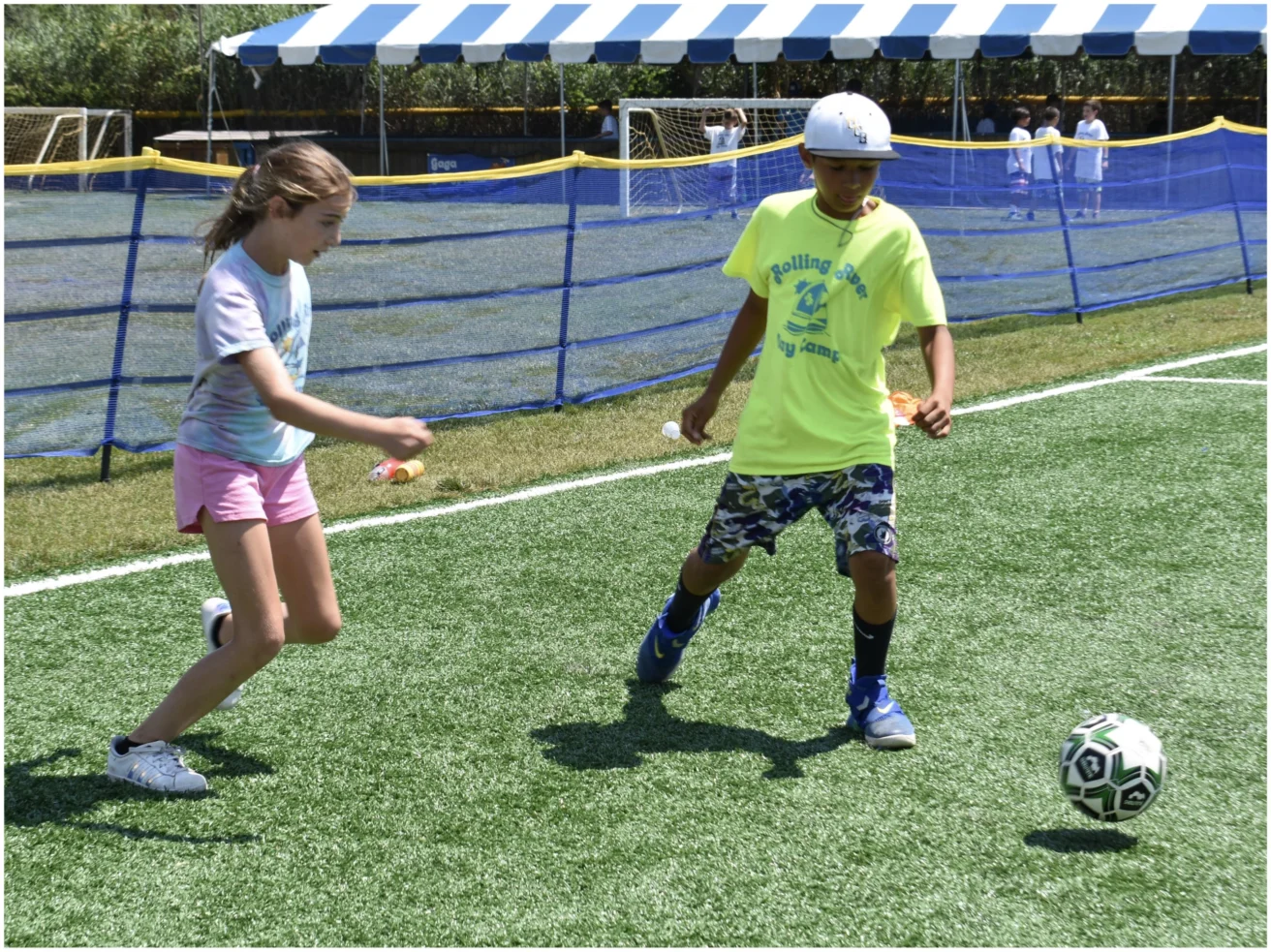 Our popular Intramural program breaks groups into teams for weekly competitive athletic events. Winners of each Intramural bracket receive the coveted Intramural t-shirt at the end of the summer. Kindergarten & first grade groups participate in a non-competitive introduction to Intramural, while second through eighth grade groups compete for points. Standings are posted each week by the Hockey Rink and basketball courts.